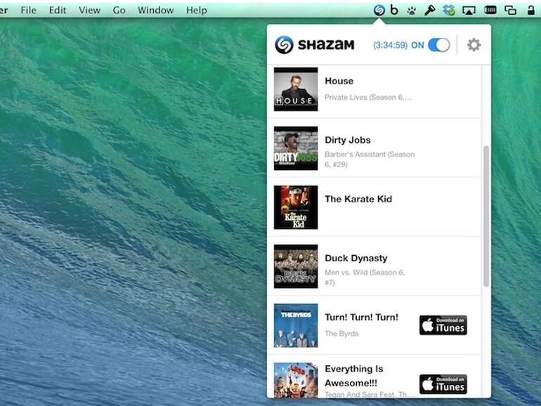 Shazam gibt es ab sofort kostenlos auch für den Mac. Die App benötigt Zugriff auf das Mikrofon und läuft dann permanent im Hintergrund mit. Sie nistet sich in der Menubar ein und kann von dort jederzeit gestoppt oder neugestartet werden. Wahlweise lässt sich Shazam also bei Bedarf aktivieren, oder sie startet bei jedem Mac-Start automatisch mit. Sobald Musik oder eine TV-Sendung erkannt werden, spuckt Shazam Name und Titel aus.