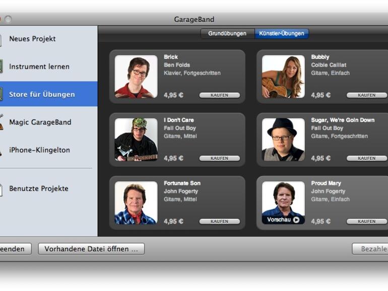 Zum Store gelangt man über GarageBand, jede Lektion kostet 4,95 Euro. Einen Erfahrungsbericht zu den kostenpflichtigen Video-Workshops veröffentlichte maclife.de Anfang Februar.