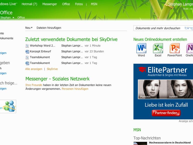 Word: Dokumente im Team bearbeiten Schritt 1: Skydrive verbinden