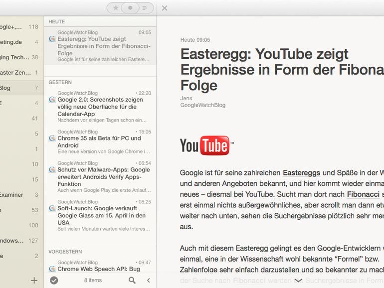 Nach dem Aus für den Google-RSS-Reader war es lange Zeit ruhig um die beliebte Mac-App Reeder. Der Entwickler Silvio Rizzi versprach zwar ein Update, stürzte sich aber als Einzelkämpfer erst einmal auf die universelle iPhone- und iPad-Variante seines Feedreaders.
