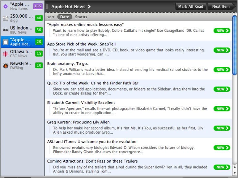 Neben der Ergänzung um Twitter hat Watanabe an der Oberfläche gearbeitet. NewsFire (Freeware) verwendet ab sofort Sparkle, um nach Updates zu suchen und das Programm zu aktualisieren.