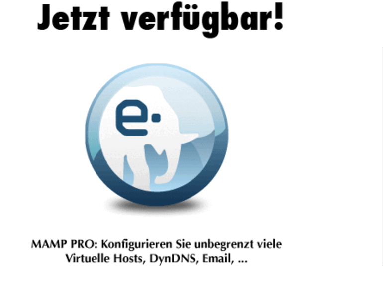 Das kostenlose Installationspaket MAMP wird von Mac-Usern weltweit eingesetzt und wurde laut Angaben von living-e bereits von mehr als 200.000 Nutzern geladen. living-e entwickelt seine Produkte kontinuierlich auch auf Basis von Anregungen und Wünschen der Community weiter. MAMP PRO auf der MacWorld in San Francisco vorgestellt und von knapp 1.000 freiwilligen Beta-Usern getestet. Der MAMP PRO kostet 39,- Euro inklusive Mehrwertsteuer und ist ab sofort verfügbar.