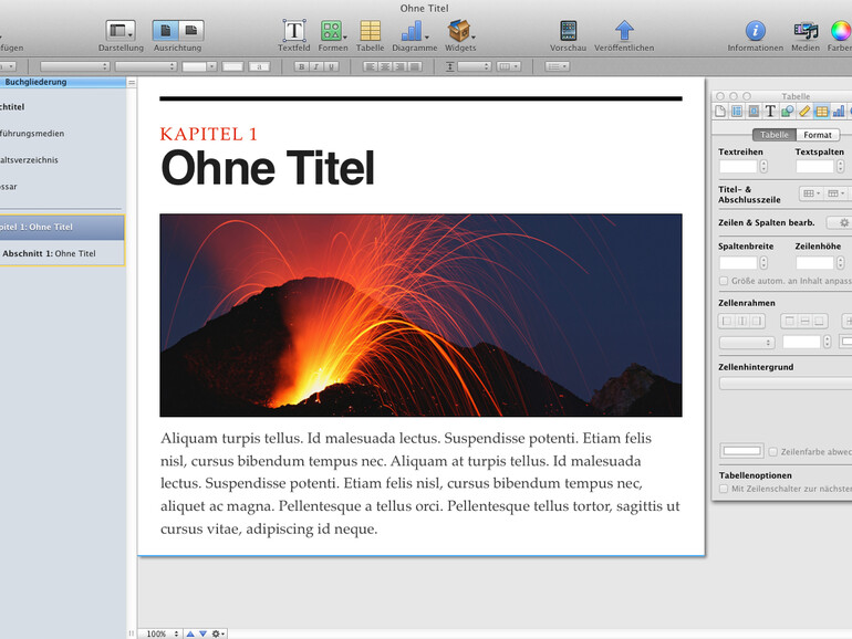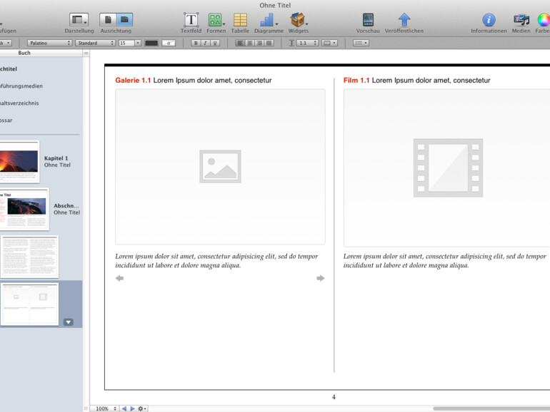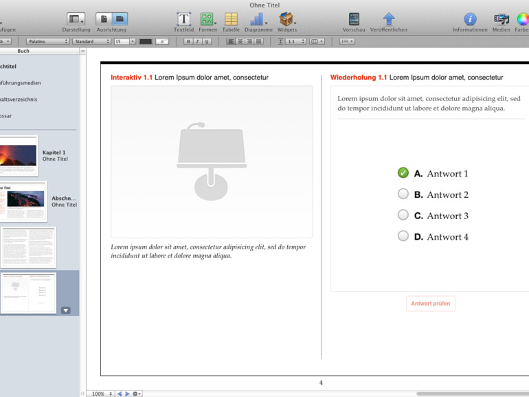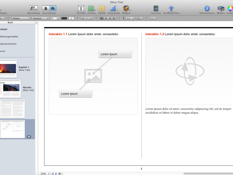 Wer sich mit Pages, Keynote und Numbers auskennt sollte mit iBooks Author keine Probleme haben