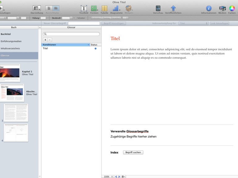 Nicht nur interaktiv sondern strukturiert wird das iBook dank dem mit wenigen Klicks zu erstellendem Glossar