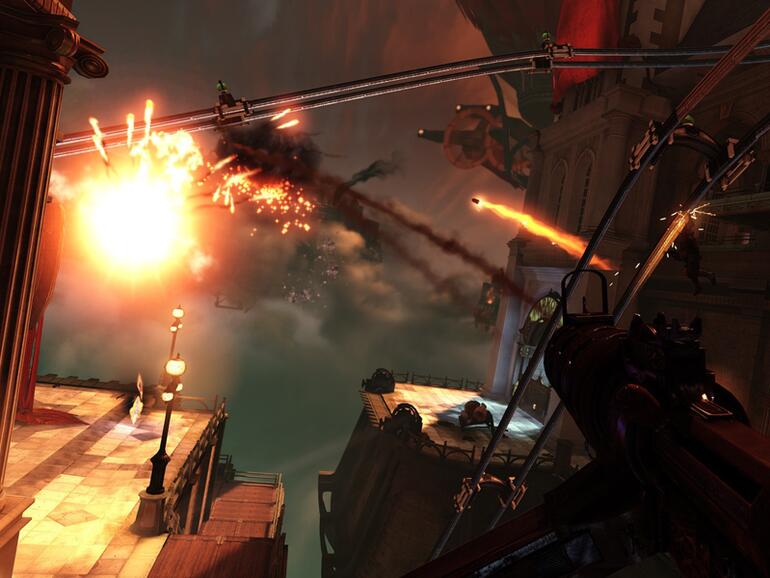 Auch der dritte Teil der BioShock-Serie begeistert durch sein ungewöhnliches Setting. Wo in den ersten beiden Serienteilen die im Art-déco-Stil gehaltene Unterwasserwelt Rapture als Schauplatz diente, spielt der Serien-Neuzugang in Columbia, einer wunderhübschen, schwebenden Stadt in einer alternativen Version der USA des frühen 20. Jahrhunderts. Treu geblieben ist man dem Genre-Mix aus Ego-Shooter und Rollenspiel, kombiniert mit einer audiovisuell beeindruckend in Szene gesetzten Hintergrundgeschichte.