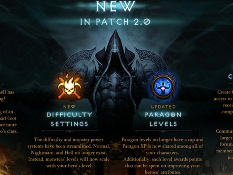 Als Vorbereitung auf die Erweiterung „Reaper of Souls“ nimmt Blizzard im aktuellen Update des Hack-and-Slay-Titels Diablo III massive Veränderungen in vielen Bereichen des Spiels vor. Allein die auf Deutsch verfügbare Liste der Neuerungen ist sechs Bildschirme lang und enthält dabei noch nicht die bisher nur auf Englisch verfügbare Beschreibung der Klassenänderungen. Auch der Spielguide wurde für Patch 2.0.1 angepasst.