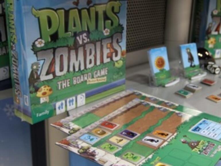 „Plants vs. Zombies: The Board Game“ soll 2 bis 4 Spieler bespaßen. In der auf der Messe gezeigten Prototypen-Schachtel liegen hierzu 80 Zombie- und 40 Pflanzen-Karten, ein Würfel sowie vier Spieltafeln, auf denen jeder Spieler seinen Rasen ganz im PvZ-Stil mit allerlei Grünzeugs vor der schlurfenden Zombiebrut verteidigen muss. Wie das genau funktioniert (und ob es Spaß macht), bleibt abzuwarten: Das Spiel soll erst im Herbst in den USA erscheinen.