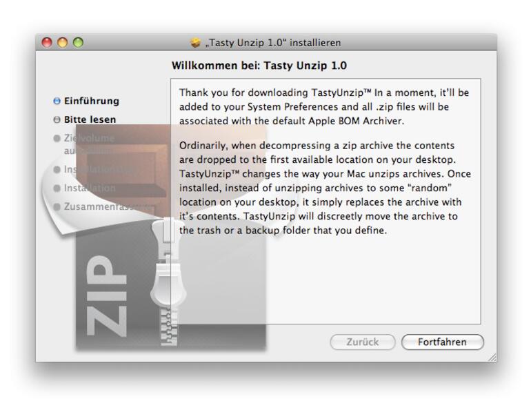 Tasty Unzip läuft unter Tiger und Leopard und kostet als Vollversion acht US-Dollar. Die Trial-Variante hält fünfzehn Tage durch.