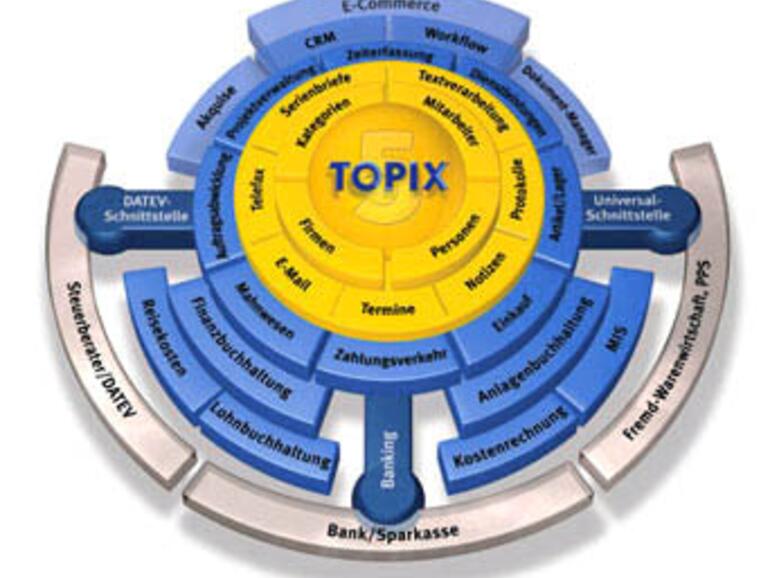 Wer das Gesamtsystem nicht benötigt, kann die Funktionen der Module Zahlungsverkehr und Banking mit dem TOPIX:5 Grundmodul auch als eigenständiges und kostengünstiges Programm für das gesamte Kontaktmanagement, die Korrespondenz, Terminverwaltung und alle Bankvorgänge nutzen.