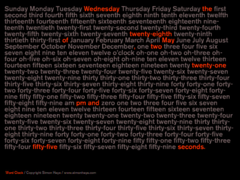 Word Clock ist Freeware. Da keine Bewegung auf dem Bildschirm stattfindet, wird vom Einsatz des Schoners mit Plasma- oder Röhrenbildschirmen abgeraten.