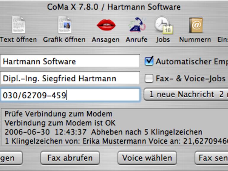CoMa enthält auch einen einfachen Terminal-Teil zum Senden und Empfangen von Dateien mit dem Z-Modem-Protokoll.