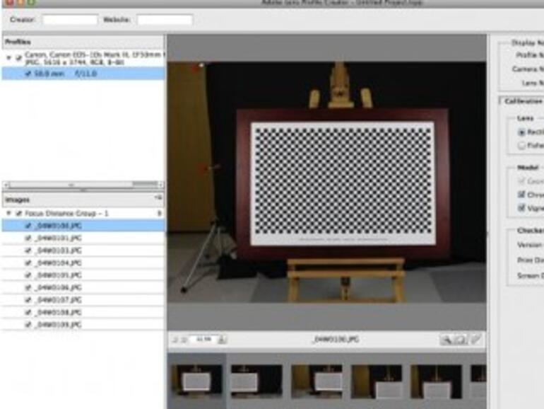 Um für das eigene Kameraobjektiv ein Korrekturprofil anzufertigen, wird noch ein Drucker benötigt, mit dem sich ein vom Programm erzeugtes Schachbrettmuster ausdrucken lässt. Dieses muss der Anwender dann mit der gewünschten Kamera-Objektiv-Korrektur aus mehreren Winkeln fotografieren. Das Lens Profile Creator Utility wertet diese Testaufnahmen aus, die als JPEG, TIFF oder Raw-Datei eingelesen werden.