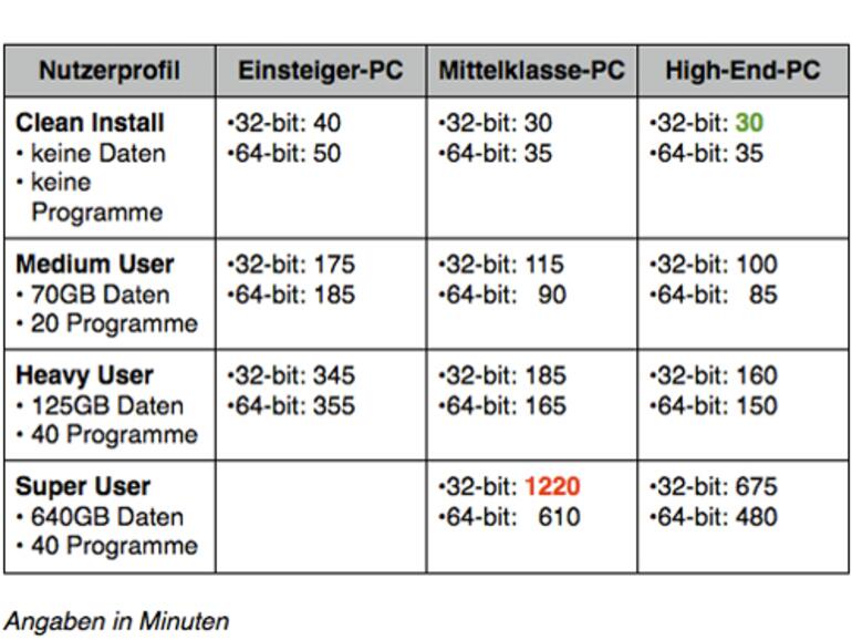 Zumindest im Vergleich zu Vista ist das Windows-7-Upgrade mindestens 5 Prozent schneller als Vista. Allerdings kann der Upgrade-Prozess auf einem System der Mittelklasse mit 640GB Daten durchaus länger als 20 Stunden dauern. Die Super-User-Konfiguration wurde nicht mit einem Budget-PC getestet, da dieses Szenario nur in seltenen Fällen eintreten würde. Allerdings ist es fraglich, ob ein Upgrade von einem leeren System in der Praxis öfter vorkommt.