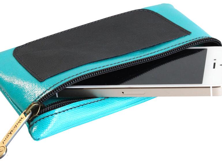 Die Waterkant Universaltasche Clutch nutze ich nicht nur unterwegs, sondern auch zuhause. Sie kann als iPhone-Tasche benutzt werden oder aber, um einen kleinen Schlüsselbund, Geld oder Pflegeprodukte unterzubringen. In der Vordertasche, die aus Echtleder besteht, kann man außerdem EC- oder Visitenkarten verstauen. Da das übrige Material der Clutch aus LKW-Plane hergestellt wurde, ist die Tasche zudem wasser- und schmutzabweisend. Somit kann sie für viele Gelegenheiten genutzt werden.