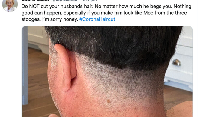 Dass man das Haareschneiden den Profis überlassen sollte, dürfte vielen bereits jetzt klar sein. Man muss nur auch den Mut haben, Nein zu sagen, egal wie nett der Ehemann einen darum bittet, ihm die Haare zu kürzen. Laura Laser bei Twitter hatte diese Erkenntnis zwar, aber leider zu spät. Ihr Mann erinnert jetzt an die "Drei Stooges".
