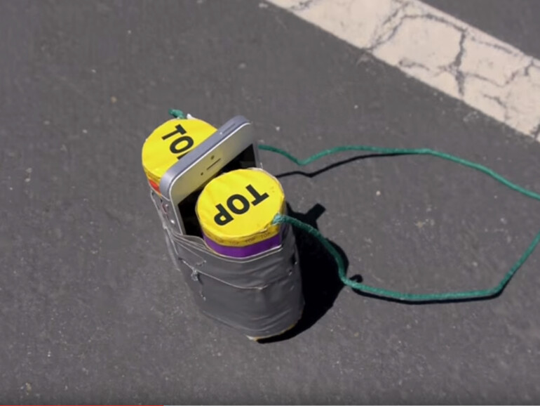 Das iPhone überlebt vieles, aber nicht die menschliche Zerstörungs-Begeisterung (Bild: Apple via YouTube)