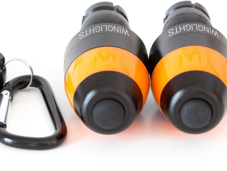 Diese einfach in den Lenker zu steckenden Lichter erhöhen die Sicherheit. Per Knopfdruck beginnen sie zu blinken, lassen sich am Ziel einfach herausnehmen, magnetisch verbinden und am Schlüsselbund aufbewahren.