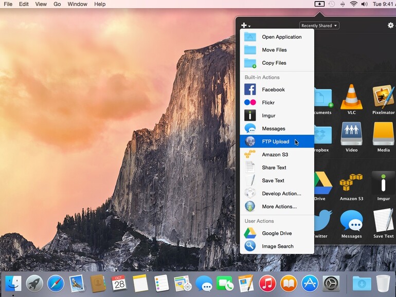 Dateien-Verteilung: Trotz vieler nützlicher Finder-Funktionen, trotz iCloud, Dropbox und Co., ist die Dateiverwaltung nach wie vor keine Aufgabe, die einfach funktioniert. Spätestens dann nicht mehr, wenn verschiedene Dienste mit ins Spiel kommen, wenn Sie also zum Beispiel Dateien irgendwo hochladen möchten. Abhilfe schafft Dropzone. Hier können Sie Shortcuts zu oft verwendeten Ordnern und Programmen hinterlegen. Dateien müssen Sie dann nur noch auf das Icon in der Menüleiste ziehen, dann auf das entsprechende Ordner- oder Programm-Symbol, et voilà. Das gleiche funktioniert aber auch mit Web-Diensten. So können Sie Bilder genau so schnell und einfach zu Flickr hochladen oder per iMessage verschicken, wie Sie Dateien auf Ihren Web-Speicherplatz bei Google oder Amazon laden können. Die Möglichkeiten sind dabei fast unbegrenzt. Twitter lässt sich genau so integrieren wie klassische FTP-Server. Dropzone kann viel Zeit sparen.