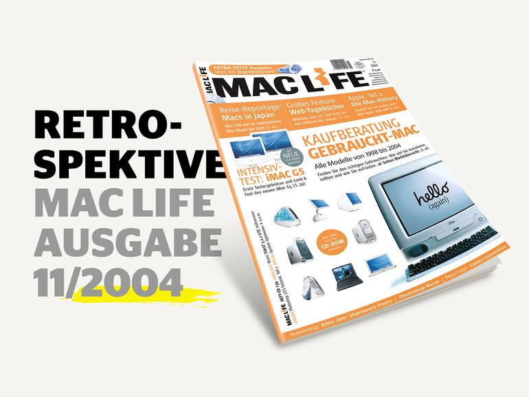 In zwei der Topthemen der Ausgabe geht es um den Mac – wir blicken dabei nach vorn, aber auch zurück. Einmal testen wir den brandneuen iMac G5, den Wegbereiter des heutigen iMac-Designs. Er ist der erste „echte“ All-in-one-Mac mit Flachbildschirm, bei dem der komplette Mac huckepack hinter dem Display untergebracht ist. Ein tragendes Konzept für die Zukunft, wie wir heute wissen. Wir blicken aber auch in die andere Richtung. In unserer Gebraucht-Mac-Kaufberatung präsentieren wir die Macs von 1998 bis 2004. Der Artikel liefert reichlich bebildert viele Details zu den einzelnen Modellen und wichtigen technischen Entwicklungsschritte vom ersten G3-iMac in „Bondi Blue“, der wie kein anderer für Steve Jobs Rückkehr zu Apple steht, bis zum damaligen Topmodell, dem Power Mac G5.