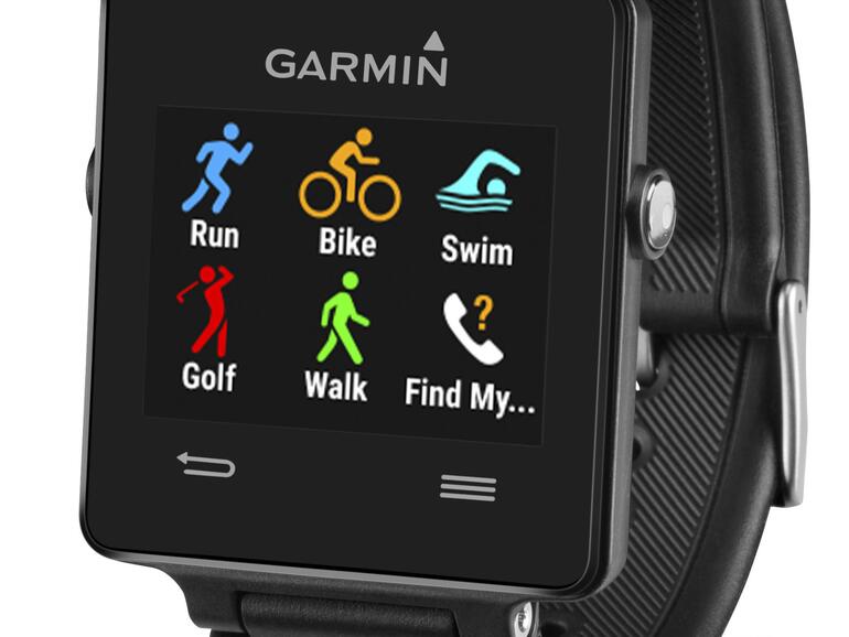 Die Sport GPS-Smartwatch Garmin vívoactive verfügt über integrierte Sport-Apps, so dass man die Uhr auch ohne Smartphone zum Trainieren nutzen kann. Sie zeigt auf dem relativ großen Display auf dem Standard-Ziffernblatt die Uhrzeit, Datum und Akkustand an. Mit einem Wisch nach links gelangt man zum Aktivitätsbildschirm mit zurückgelegten Schritten, erreichter Distanz, den verbrauchten Kalorien sowie dem Tagessoll. Dieses kann individuell festgelegt werden. Man kann sich auch Push-Mitteilungen von Apps, eingehende Mails oder bevorstehende Termine anzeigen und bei Bedarf durch Vibration auf diese hinweisen lassen. Die vívoactive ist zudem wasserdicht und der Akku hält bis zu 3 Wochen. Bei starkem Gebrauch des GPS kann sich die Laufzeit aber auch auf rund 10 Stunden verkürzen.
