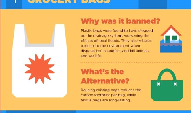 4) Plastik-Einkaufstüten: In Bangladesh wurden Plastik-Einkaufstüten verboten, weil sie die Kanalisation verstopften und so lokale Überschwemmungen förderten. Zudem setzen Einkaufstüten aus Kunststoff Giftstoffe frei, wenn sie auf Müllhalden gesammelt werden und sind für das Sterben von Tieren und dem Leben auf See verantwortlich.