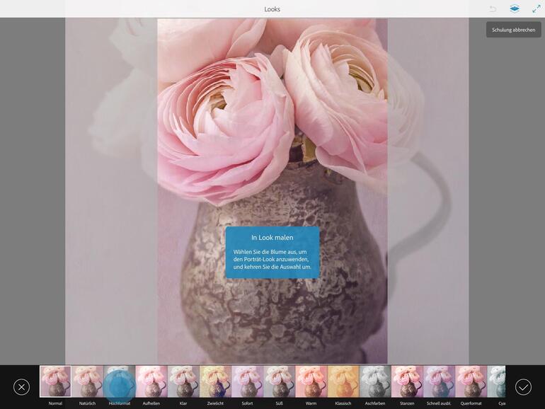 Mit der mobilen Version der Fotoverwaltungs - und bearbeitungssoftware ist es möglich, bequem auf dem Sofa die besten Aufnahmen aus der Sammlung zu sortieren. Die gelungenen Bilder können hier mit Funktionen für Belichtungskorrektur und Retuschen bearbeitet werden. Alle Änderungen lassen sich mit der Desktop-Version von Lightroom CC automatisch synchronisieren – dafür ist aber zumindest das Foto-Abo (11,89 Euro pro Monat) von Creative Cloud, das Lightroom und Photoshop enthält, notwendig.