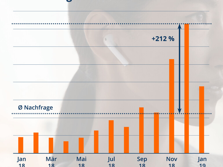 Seit rund einem Jahr sind Nachfolger zu den AirPods im Gespräch. Ein drahtloses Ladecase ist noch länger von Apple angekündigt. Dennoch stieg das Kaufinteresse laut dem Vergleichsportal Idealo zum Jahresende deutlich an. Natürlich waren die kleinen Ohrhörer ein beliebtes Weihnachtsgeschenk, aber eine Steigerung von rund 212 Prozent gegenüber der durchschnittlichen Nachfrage des letzten Jahres ist dennoch beeindruckend.
