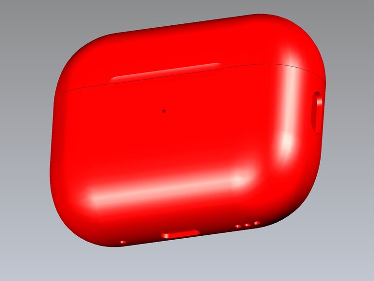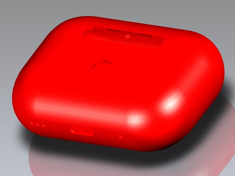 Auf den geleakten CAD-Renderings sieht man nun einen möglichen Lautsprecher und auch ein Mikrofon – das sind die kleinen Kreise am unteren Rand des Lade-Cases. Die dritte neue Funktion beziehungsweise ein Extra lässt sich an der Seite erkennen. Dabei soll es sich um eine Aussparung handeln, die für ein Band gedacht ist, um sich das Case umzuhängen. Diese Lanyard-Befestigung wurde bereits in einem früheren Leak dokumentiert.