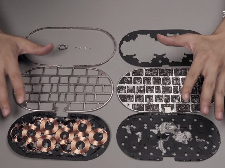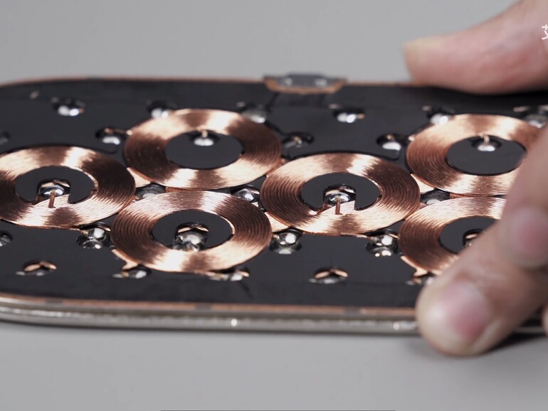 Insgesamt scheinen 14 Ladespulen integriert worden sein. So wäre es möglich gewesen, die Geräte irgendwo auf der Oberfläche platzieren zu können. Neben den Ladespulen zeigt der Teardown Unmengen an Elektronik, die in das Gehäuse gezwängt wurde.