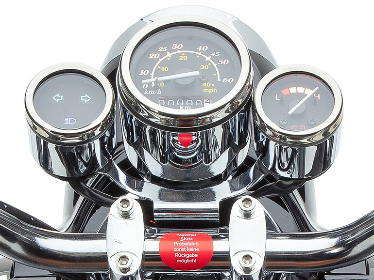 Eine Schaltung gibt es nicht, das Fahrzeug arbeitet mit einer stufenlosen Automatik. Da es sich um ein Elektrofahrzeug handelt, ist man auch total still und leise unterwegs. Das stresst natürlich Fahrer, Sozius und die Umgebung weniger als ein Roller mit Verbrennungsmotor. Allerdings warnen wir davor, allzu sorglos unterwegs zu sein: Viele Fußgänger gehen immer noch mit den Ohren über die Straße und gucken nicht ordentlich hin. In diesem Fall sind lautlose Fahrzeuge natürlich riskant.