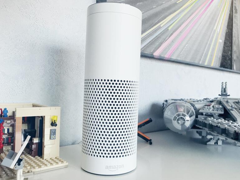 Bei Amazon Echo handelt es sich um einen 360° onmidirektionalen Lautsprecher, der mit zahlreichen Mikrofonen ausgestattet und für 179,90 Euro erhältlich ist. Er liefert dank Hoch-, Tief, und Mitteltöner einen soliden Sound bei der Audiowiedergabe. Die wahre Stärke liegt jedoch in der Sprachsteuerung. Diese lässt sich über einen Knopf an der Oberseite aktivieren oder noch einfacher auf Zuruf „Alexa".
