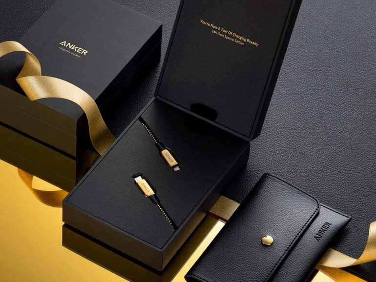 Laut Anker weist das Kabel, das zur PowerLine+ III-Familie gehört, ein „Special Edition Gold Design“ auf, das mit den bereits erwähnten vergoldeten Hülsen und dem passenden geflochtenen Gold- und Schwarzkabel „kühn und doch elegant“ aussehen soll.