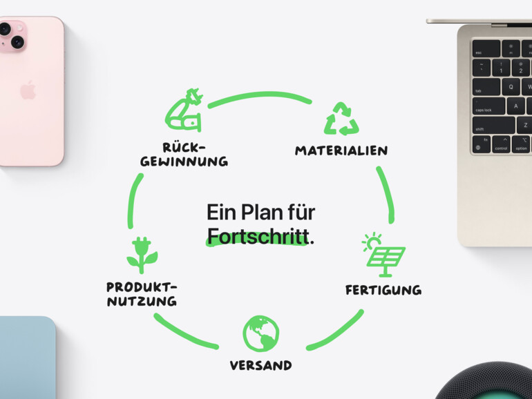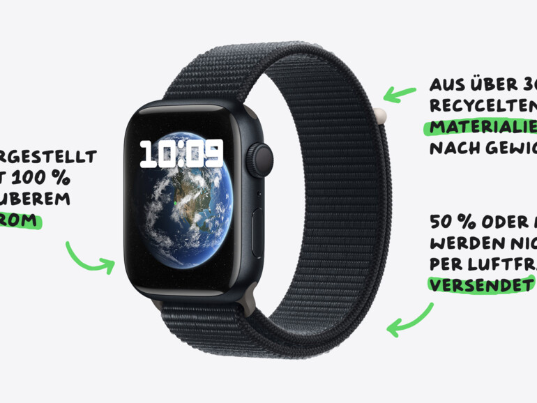 Erreichen kann Apple dieses Ziel, weil man gute Fortschritte auf dem Weg zur Kreislaufwirtschaft gemacht hat. So bestehen etwa die Gehäuse der neuen Apple Watch zu 100 Prozent aus recyceltem Aluminium, in den Batterien findet sich 100 Prozent recyceltes Kobalt und etwa das neue Sport-Loop-Armband besteht zu 82 Prozent aus recyceltem Garn.