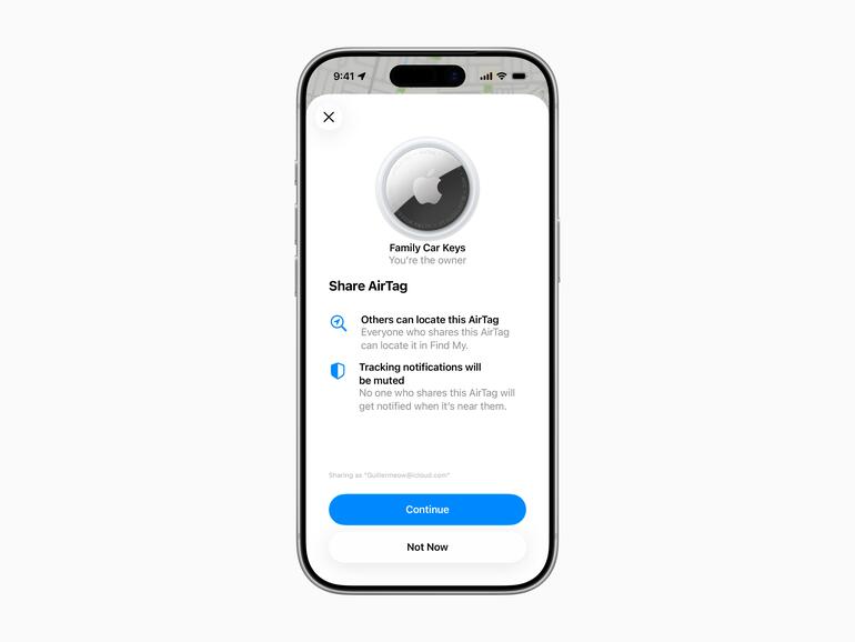 Der neue AirTag ist ausschließlich für die Ortung von Gegenständen und nicht von Personen oder Haustieren entwickelt worden. Er verfügt über eine Reihe von branchenweit einzigartigen Schutzmaßnahmen gegen unerwünschte Ortung, darunter plattformübergreifende Warnmeldungen und einzigartige Bluetooth-Identifikatoren, die sich häufig ändern.
