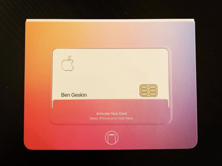 Auf den ersten Aufnahmen fällt natürlich auf, dass Apple tatsächlich ernst macht und abseits des Namens keinerlei Informationen auf die Karte aufdruckt oder eingraviert. Daneben kommt die Karte in einer farbenfrohen Verpackung, die die einfache Anleitung für die Inbetriebnahme der Karte beinhaltet: „iPhone aufwecken und hierhin halten“. Damit soll die Karte ähnlich einfach gekoppelt werden wie beispielsweise die AirPods.