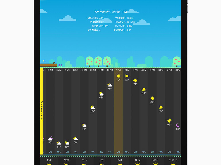 Carrot Weather ist bekannt für humorvollen Wettervorhersagen und einzigartige Optik. Ein Designupdate brachte Einfachheit und Eleganz für alle Apple Plattformen mit sich. Von witzigen Wettervorhersagen bis hin zu einer Vielzahl anpassbarer Widgets bietet Carrot Weather jede Menge Unterhaltung.