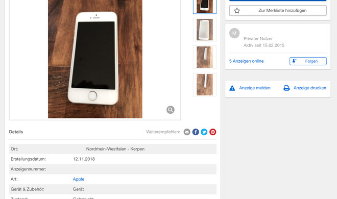 Und das ist über also nicht nur bei eBay Kleinanzeigen.