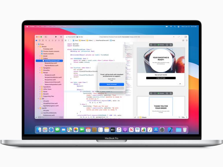 Entwickler können umgehend mit der Aktualisierung ihrer Apps beginnen, um so die erweiterten Funktionen von Apples eigenen Chips auf dem Mac zu nutzen. Durch den Übergang von der x86- auf die RISC-basierte ARM-Architektur wird auch eine gemeinsame Plattform für alle Apple-Produkte geschaffen. Das macht es Entwicklern künftig deutlich leichter, ihre Apps für das gesamte Ökosystem zu schreiben und zu optimieren.