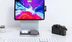 Das StudioDock ist mit einer drehbaren magnetischen Befestigungsplatte ausgerüstet, die das iPad sichert. Es wird über USB-C mit dem Kensington Dock verbunden, das Anschlüsse wie USB-A-, Ethernet- und HDMI besitzt und daraus eine Art Desktop-Rechner zaubert. Im Sockel sind unten noch zwei Qi-Ladegeräte eingebaut - damit lässt sich dann zum Beispiel das iPhone oder die Hülle der AirPods aufladen. Ein optionales Apple Watch-Ladegerät soll auch noch kommen.