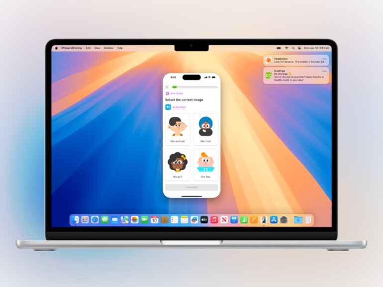 iPhone Mirroring erlaubt es dir, dein iPhone vom Mac aus zu steuern. Dabei kannst du Benachrichtigungen sehen und Apps nutzen, auch wenn dein iPhone gesperrt ist. Die Funktion wird später auch Drag-and-Drop zwischen Mac und iPhone ermöglichen.