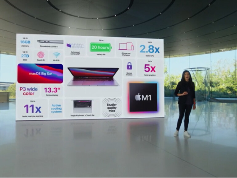 Mit dem M1 ist das 13 Zoll-MacBook Pro laut Apple jetzt bis zu dreimal schneller als der meistverkaufte Windows Laptop seiner Klasse. Dieser Vergleich ist für einen eingefleischten Mac-Nutzer zwar wenig interessant, zeigt aber auch, wo Apple jetzt wieder seine neuen Kunden finden möchte – bei Umsteigern.