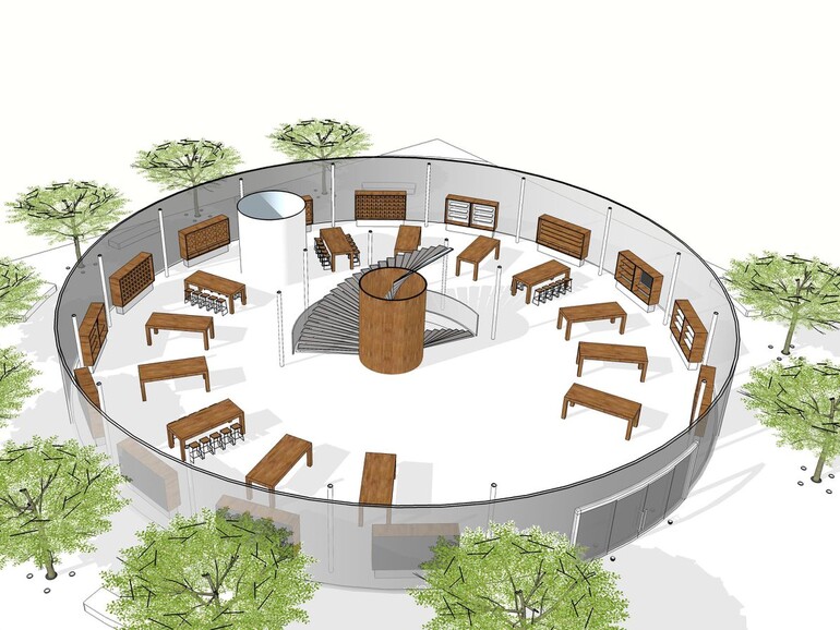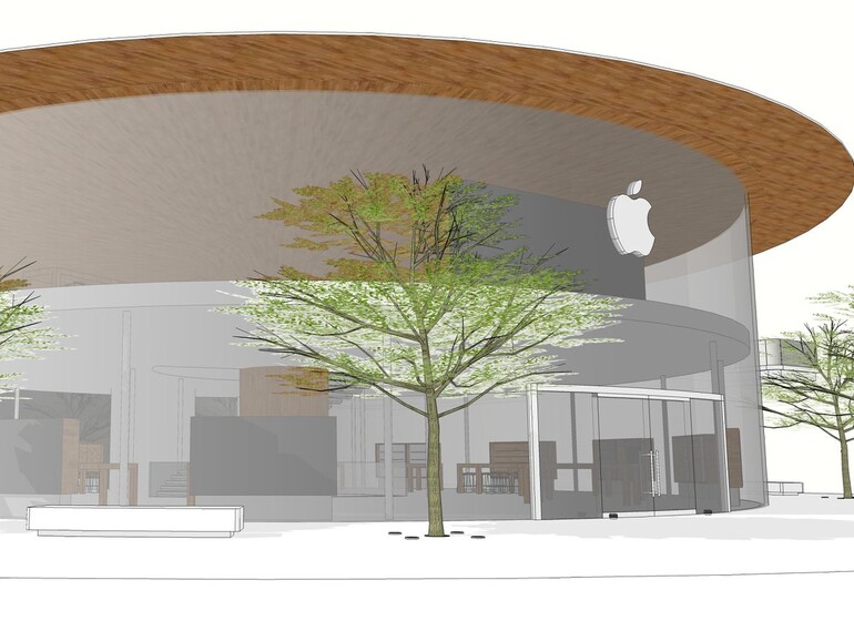 Ähnlich wie die Bühne im Apple-Hauptquartier setzt auch der neue Apple Store in Bangkok auf eine 360-Grad-Glasfläche, die allerdings aufgrund der zwei Etagen Stützfeiler im Inneren benötigt. Passend dazu kamen nun auch Pläne zum Aufbau des Stores ans Licht, obwohl Apple aktuell das Innenleben noch durch schwarze und undurchsichtige Folie unter Verschluss hält.