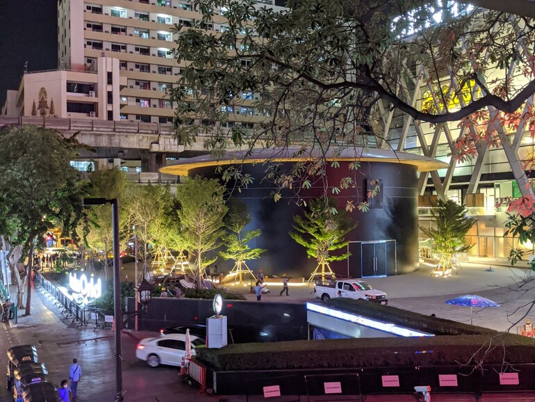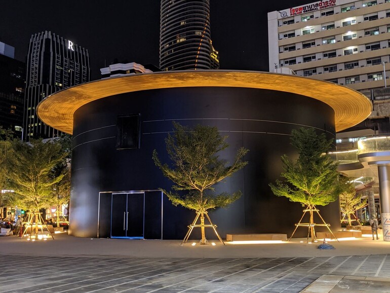 Der neue Apple Store befindet sich vor dem Einkaufzentrum Central World und ist auf einem offenem Platz gut sichtbar. Dabei beeindruckt das runde Design, das den zweistöckigem Store zum Hingucker macht. Gleichzeitig erinnert der Bau auch an das Steve Jobs Theater, welches im Apple Park für Events bereitsteht und durch sein Glasdesign mit freitragendem Dach eine architektonische Errungenschaft darstellt.