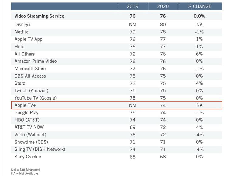 "Wie der amerikanische Kundenzufriedenheitsindex (ACSI) nun feststellte, konnte Apple nicht überzeugen und wurde mit 74 von 100 bewertet. Damit liegt Apple TV+ unterhalb des Durchschnitts auf Rang 12."