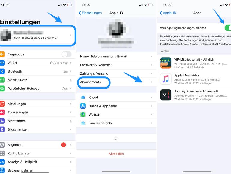 Ein wöchentliches Abo für ein Spiel, ein Monatsabo für Apple Music, ein Jahresabo für die Finanz-App: Da mittlerweile zahlreiche App-Anbieter ein Abonnement-Modell für ihre Anwendungen und Dienste anbieten, kommen bei vielen iPhone-Nutzern etliche Apple E-Mails mit sogenannten Verlängerungsrechnungen an. Damit stellt Apple jeweils die neu anlaufende Abo-Zeit in Rechnung und informiert somit gleichzeitig noch einmal über den Ablauf des Abos. Im Grunde ist das automatische Verschicken der Rechnungen eine praktische Sache, doch viele Nutzer empfinden es als durchaus nervig – zumal man die eigentlichen Rechnungen für alle Ausgaben ja über seinen Apple-Store-Account einsehen kann.
