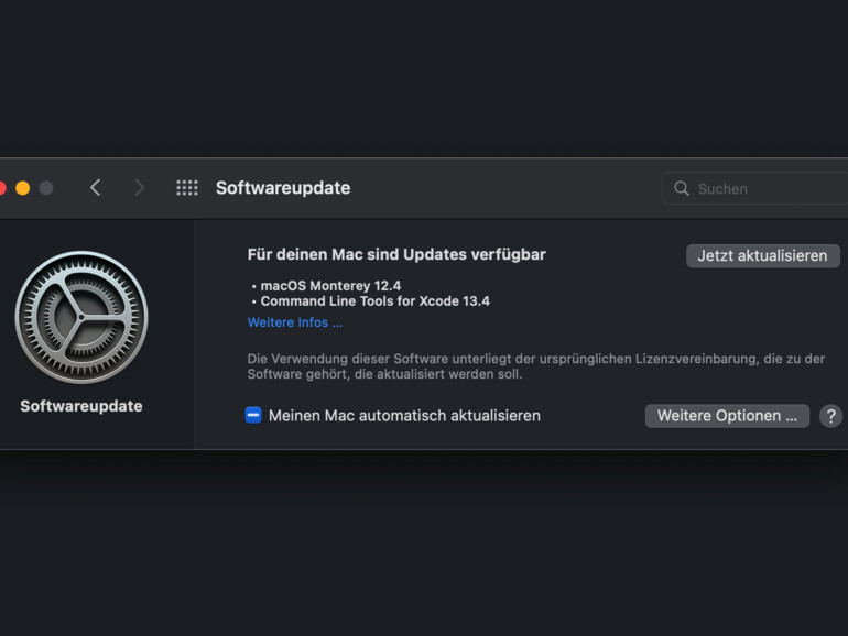 Wer macOS 12.4 sofort aufspielen will, kann dies in den Systemeinstellungen unter dem Punkt Software-Update einleiten: Zunächst wird das Update heruntergeladen, dann installiert. Das dauert je nach Mac etwa eine halbe Stunde oder etwas mehr.