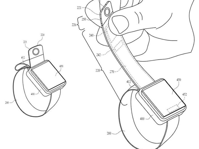 Daneben könnte das Armband ein weiteres besonderes Feature erhalten, damit Sie die Kamera nicht ständig in Position halten müssen. Laut der Patentbeschreibung könnte hier ein formbarer Metallkern vorhanden sein, der für einige Zeit die Position der Kamera fixiert und damit etwa auch FaceTime-Anrufe ermöglicht. Zudem könnte das Band auch zwei Kameras beherbergen, sodass auch 360-Grad-Aufnahme möglich erscheinen.