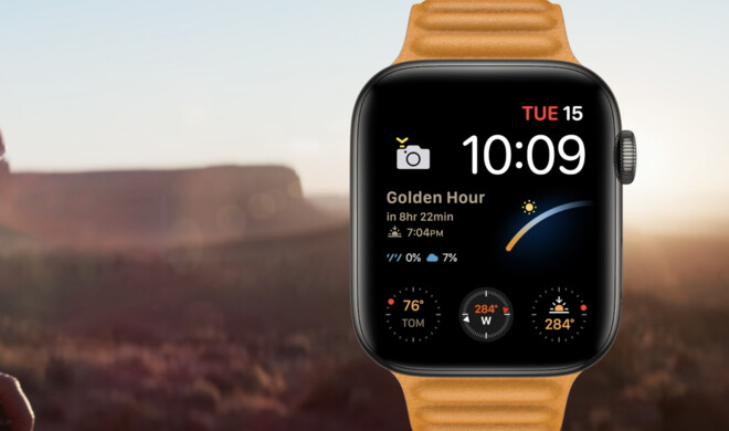 Auch wenn sie für andere Modelle verfügbar sind, führt Apple mit der Series 6 neue Zifferblätter und Komplikationen ein. Dazu gehört das Memoji-Zifferblatt, der neue Chronograph Pro, Streifen und einige mehr. Als Beispiel zeigte Apple die neuen Möglichkeiten von Komplikationen, die sich für verschiedene Aufgaben einrichten lassen. Auf dem Bild sieht man etwa eine Einstellung für Fotografen.