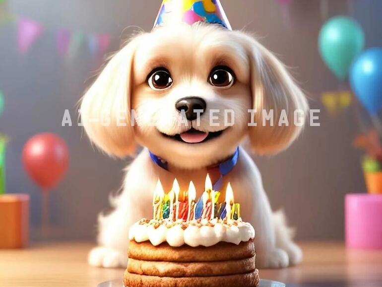 Das Bild zeigt einen süßen Hund, der einen Partyhut trägt und hinter einer Geburtstagstorte lächelt. Apple teilte das Bild mit Wired, welches eine Politik verfolgt, alle KI-generierten Bilder in seinen Veröffentlichungen mit einem Wasserzeichen zu versehen. Bilder, die mit „Image Playground“ erstellt wurden, enthalten in der EXIF-Metadaten des Dateiformats ebenfalls den Hinweis, dass sie mit KI erstellt wurden, ähnlich den Bildern, die mithilfe des neuen „Clean Up“-Tools in der Fotos-App in iOS 18.1 bearbeitet wurden.