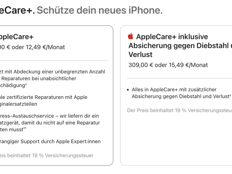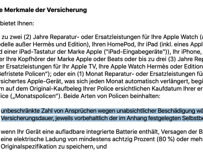 Für Diebstahl und Verlust gibt es übrigens keine Änderung. In solchen Fällen werden weiterhin bis zu zwei Fälle pro Jahr über Apple Care+ abgerechnet.